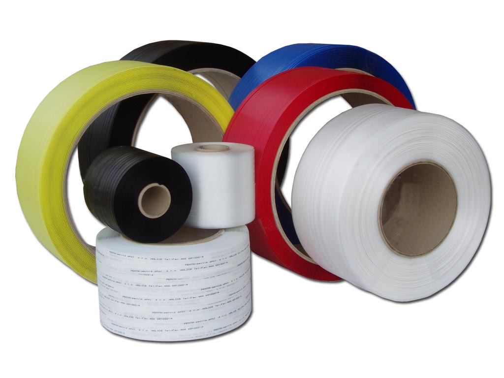 PP, PET, PES, ocelové, papírové a fóliové vázací pásky v různých rozměrech a různou délkou návinu. Vázací pásky je možné opatřit potiskem a tím zvýšit jejich atraktivitu.