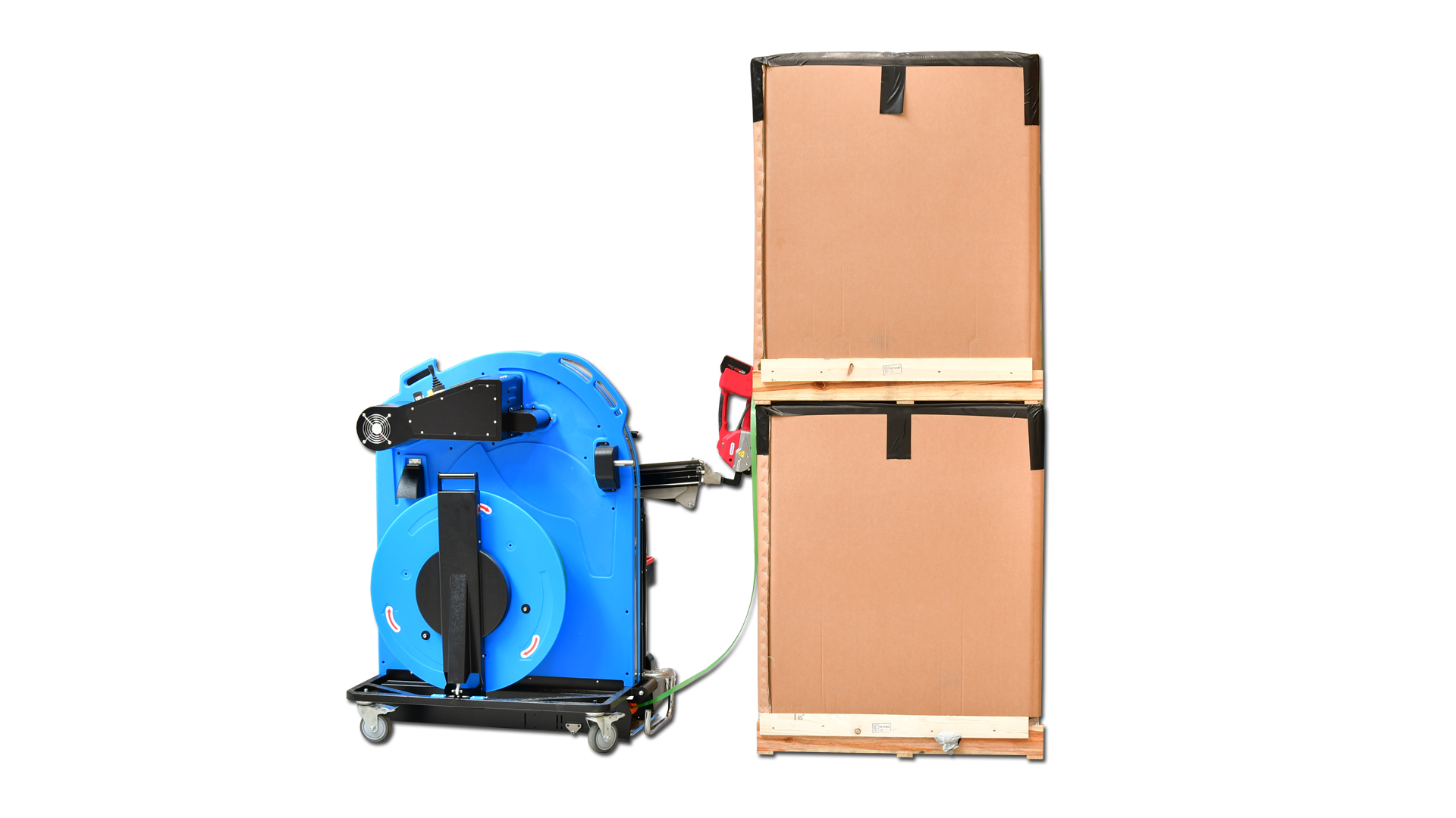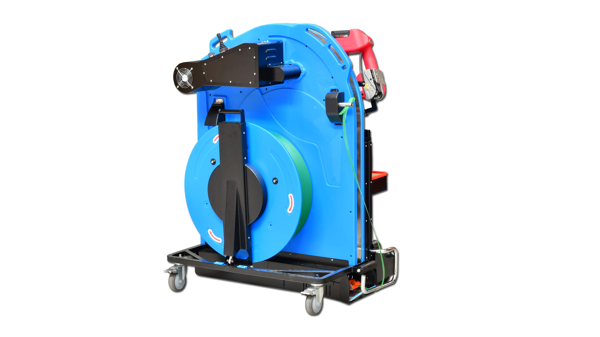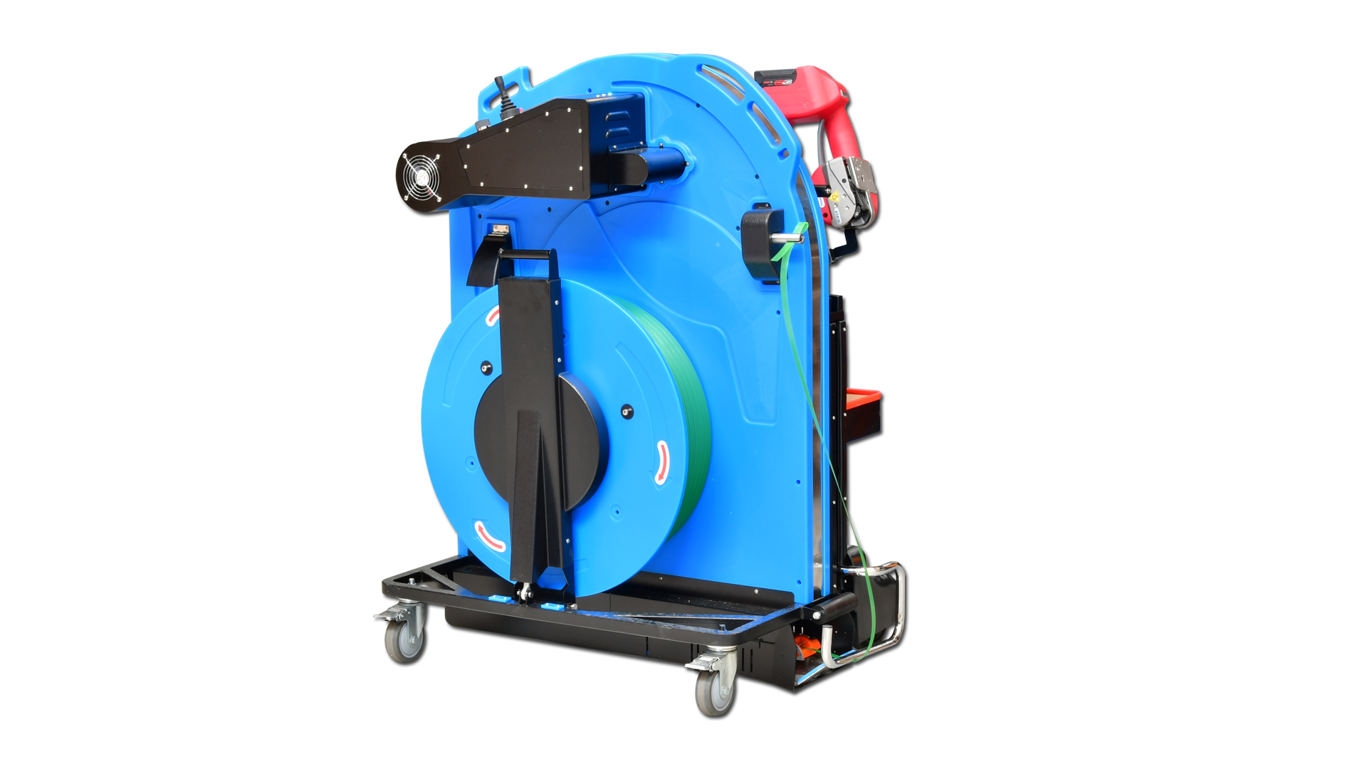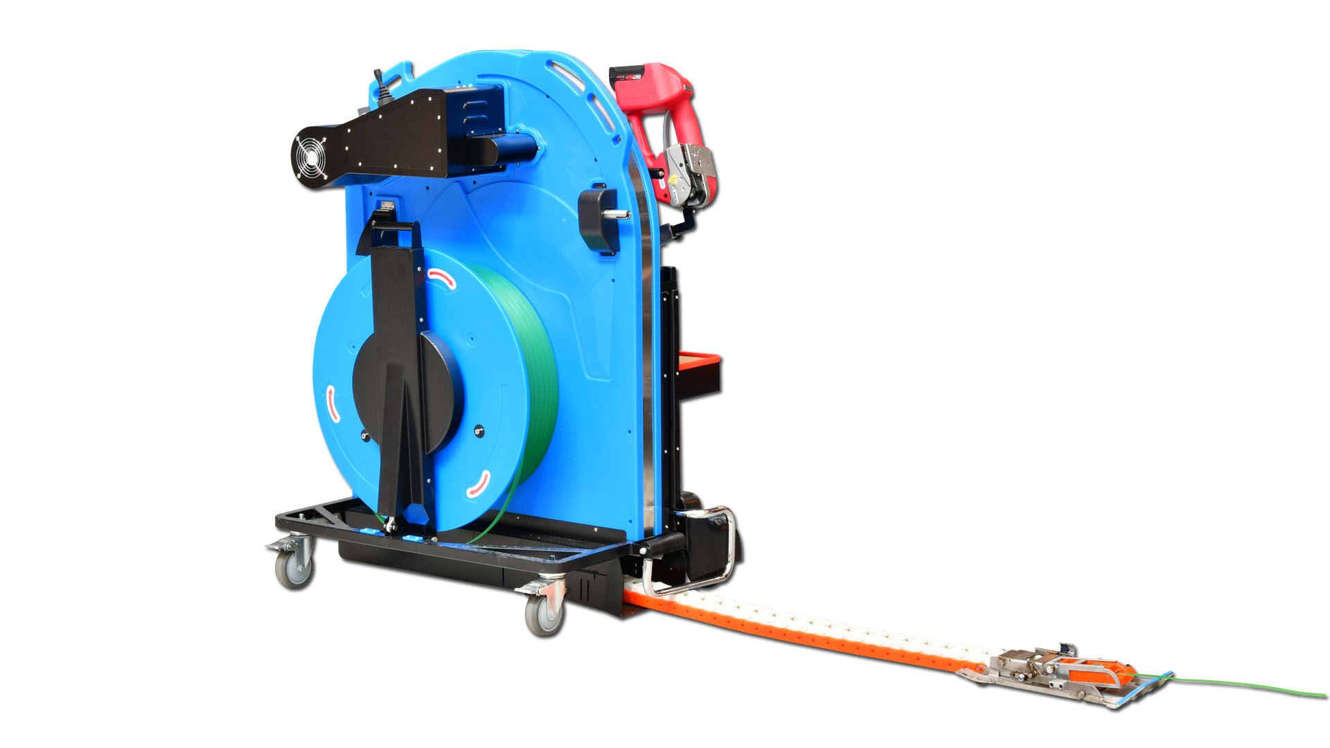 Stroj je vybaven teleskopickým ramenem určeným na AKU páskovačku, která zajistí svaření vázací pásky, dle nastavených parametrů. Standardně dodáváme model Strapex nebo H-46, podle preferencí a požadavků zákazníka.