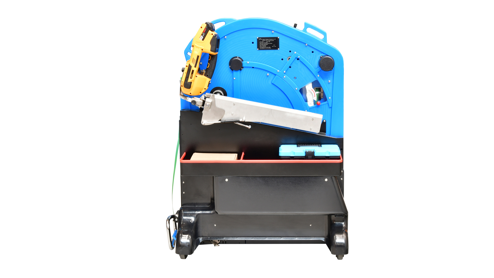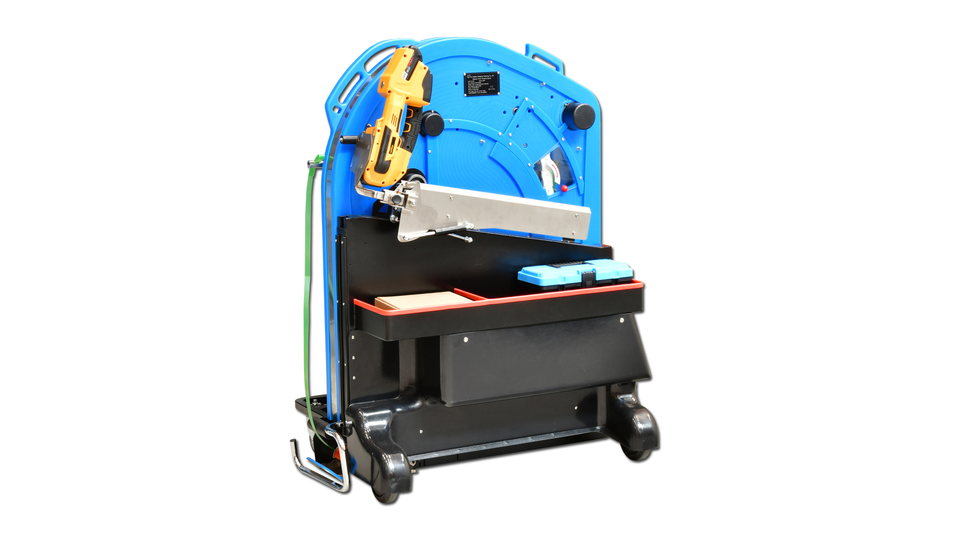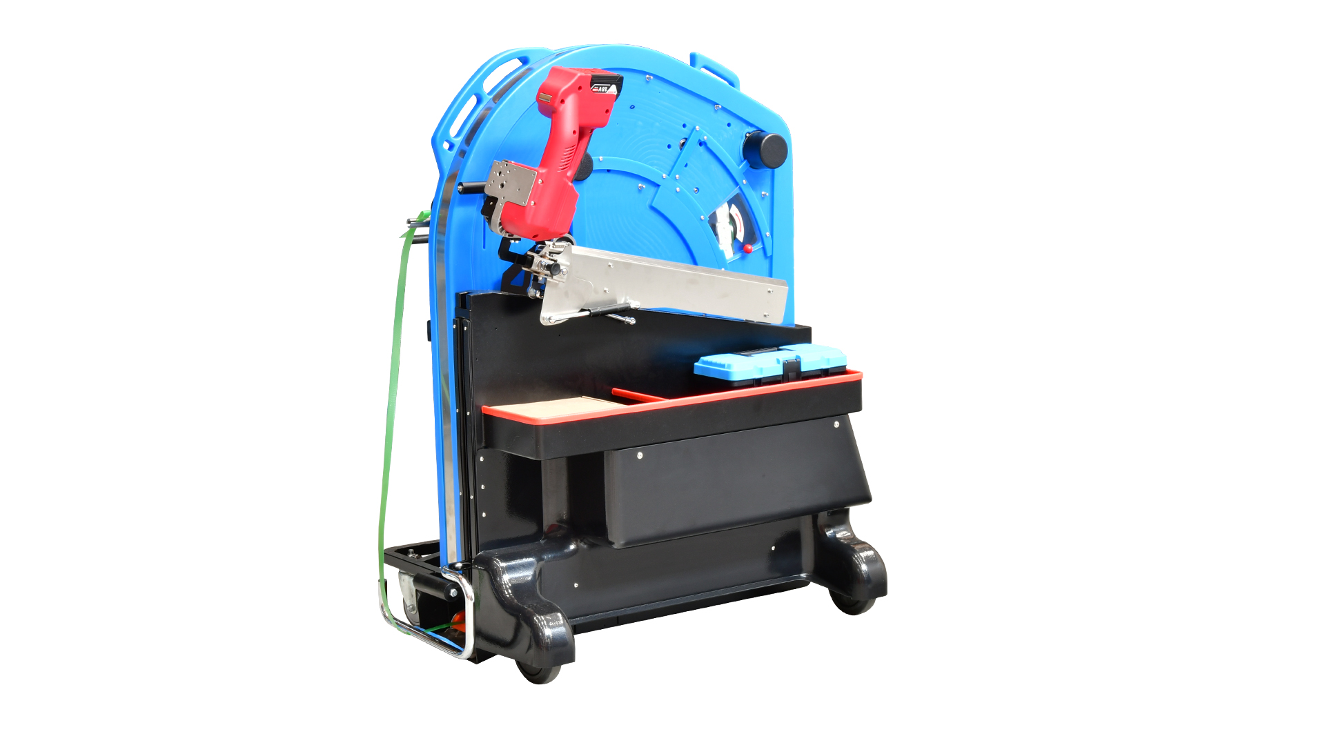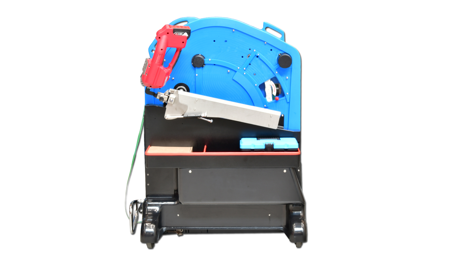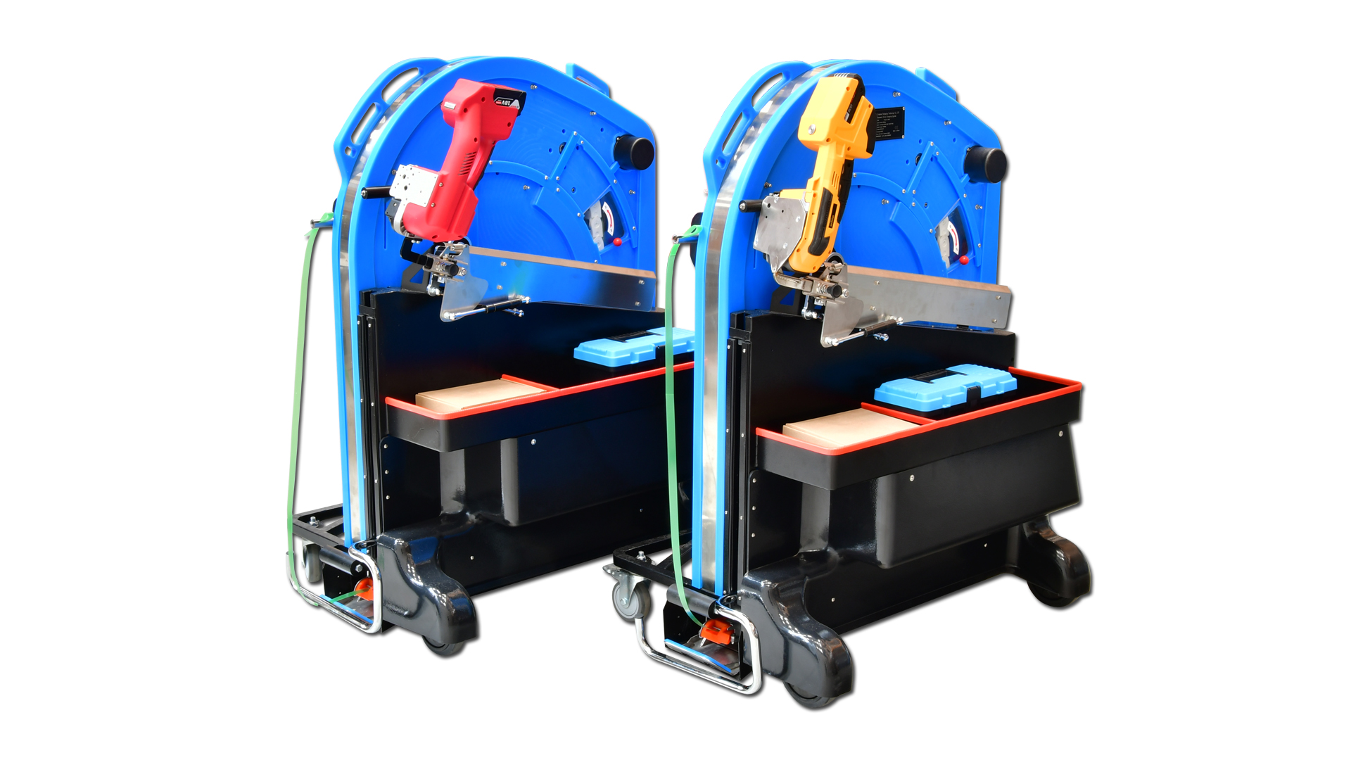 Stroj je vybaven teleskopickým ramenem určeným na AKU páskovačku, která zajistí svaření vázací pásky, dle nastavených parametrů. Standardně dodáváme model Strapex nebo H-46, podle preferencí a požadavků zákazníka.