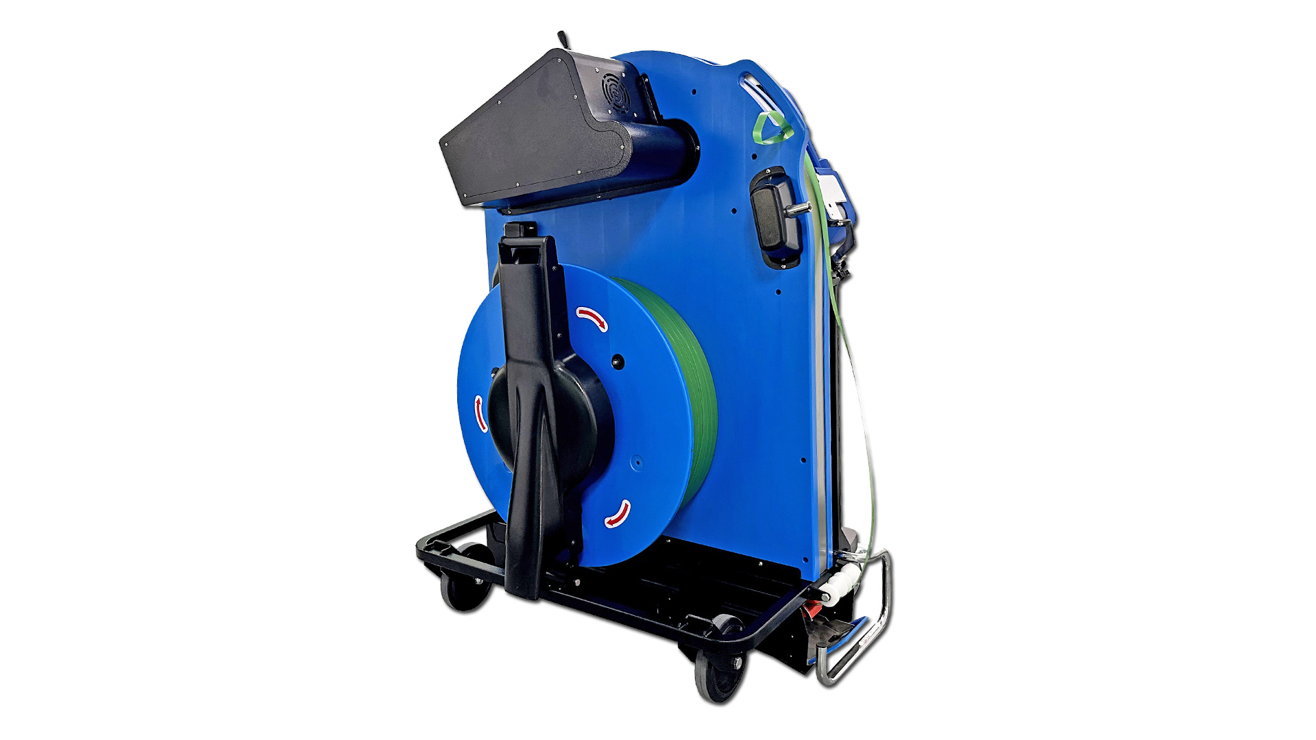 Stroj je vybaven teleskopickým ramenem určeným na AKU páskovačku, která zajistí svaření vázací pásky, dle nastavených parametrů. Standardně dodáváme model Strapex nebo H-46, podle preferencí a požadavků zákazníka.