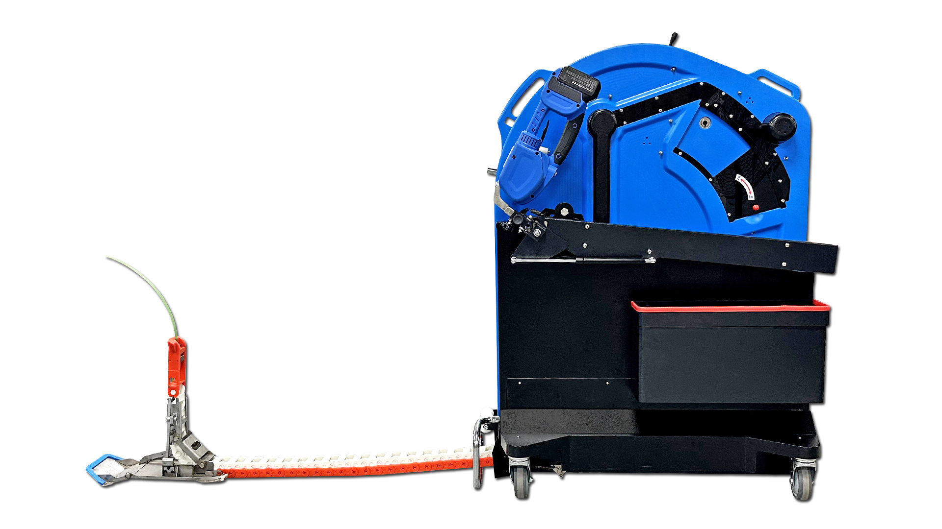 Díky inovativnímu systému segmentového řetězu je vedení pásky výrazně jednodušší – obsluha se nemusí ohýbat a ušetří tak čas i fyzickou námahu.