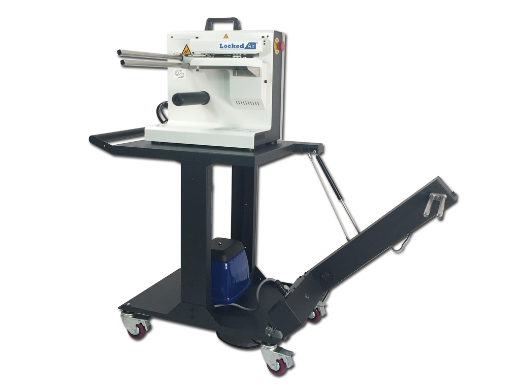 Stoj pro výrobu vzduchové výplně LA-F1 PRO s externím kompresorem umožní rychlou výrobu pouze potřebného množství výplňového materiálu, čímž ušetříte nemalé množství prostoru nutného ke skladování bublinkové fólie v rolích či pytlů s fixačními granulemi.