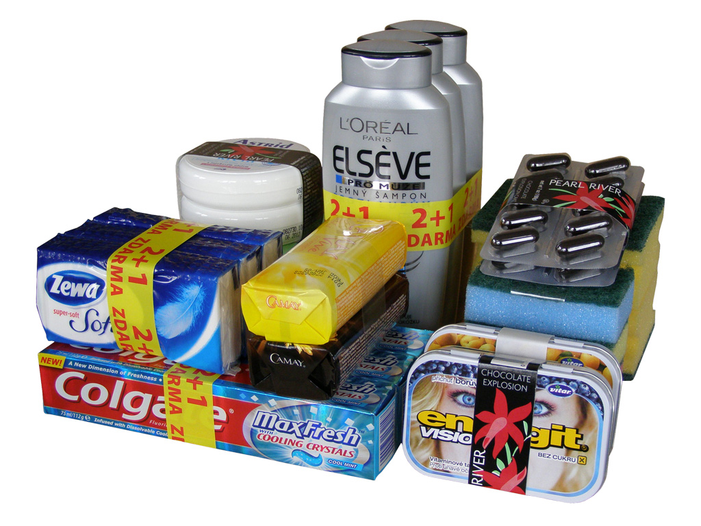 Pomocí papírové a fóliové pásky lze vytvářet tzn. multibalení a marketingové akce typu 2+1 zdarma.