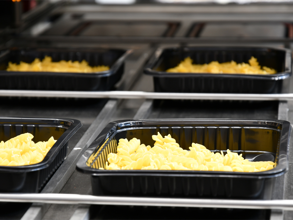 Automatický miskovací stroj E30 – balení těstovin do misek