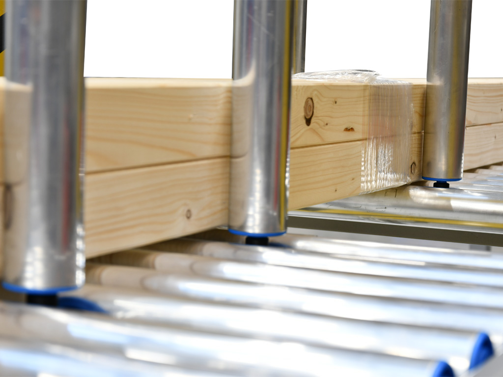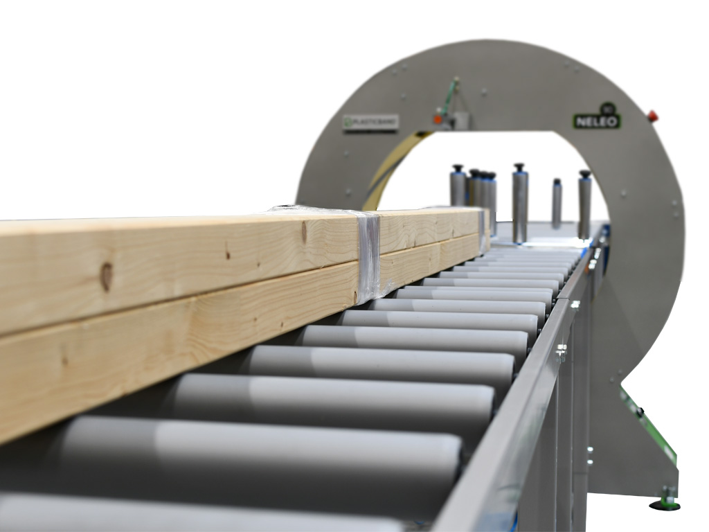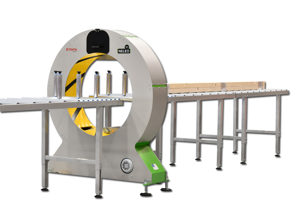 Horizontální ovíjecí stroj je vybaven vstupním a výstupním válečkovým dopravníkem, který usnadní přísun dlouhých dřevěných trámů do prostoru balení. Horizontální ovíjení je vhodné pro balení předmětů neomezené délky.