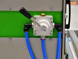 - Pneumatické nastavení výšky do dvou poloh: jednoduché ovládání výšky stroje pomocí páčky.