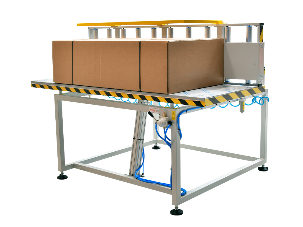 Tento dopravník slouží k bezpečnému a plynulému překlopení kartonu o 90 stupňů, což výrazně usnadňuje manipulaci při balení a snižuje fyzickou zátěž obsluhy.