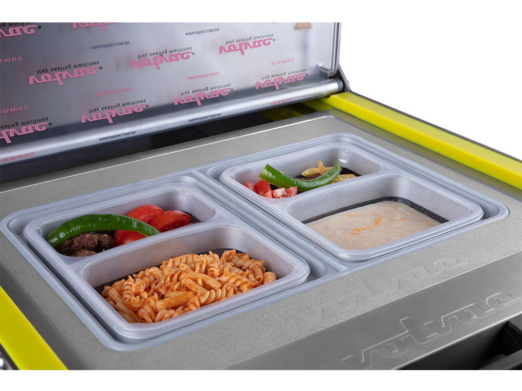 Miskovací stroj TS52 je vhodný především do restauračních provozů, k rozvozu jídel či do menších výroben potravinových produktů.