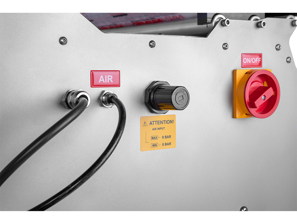 - Hlavní vypínač a regulace vzduchu stroje