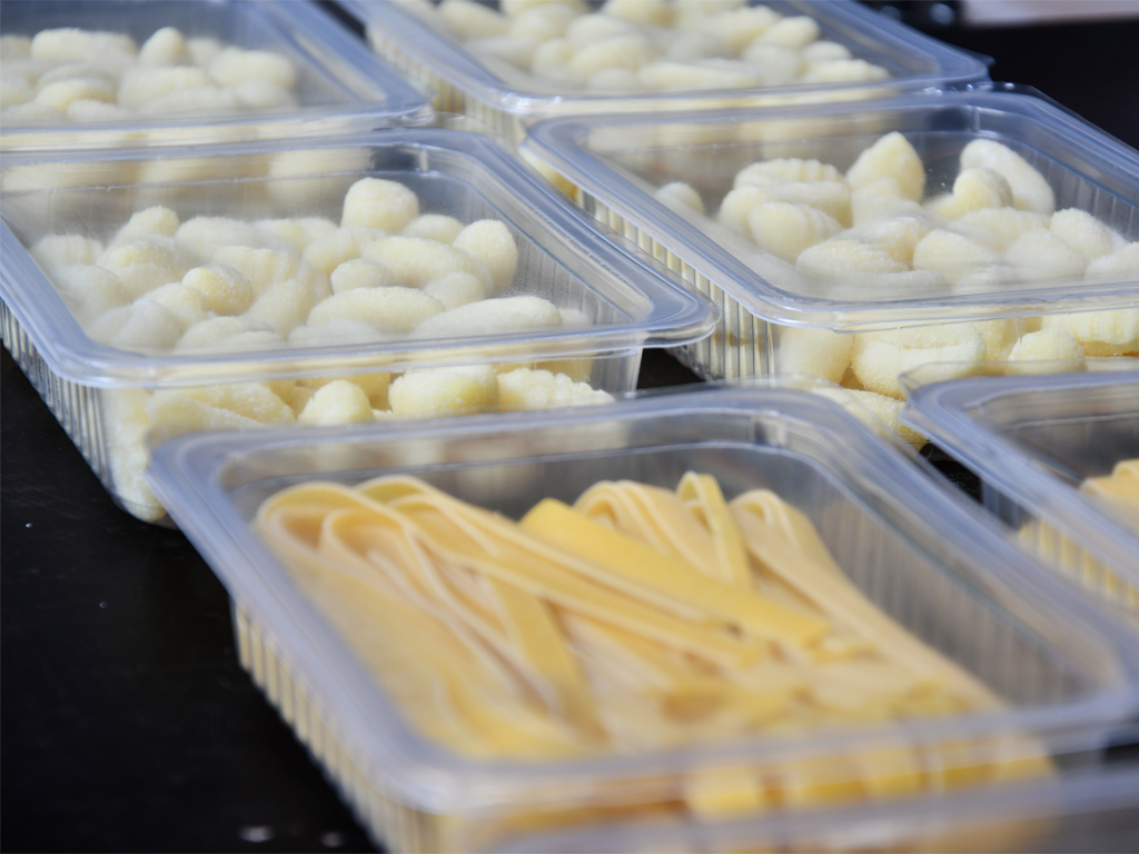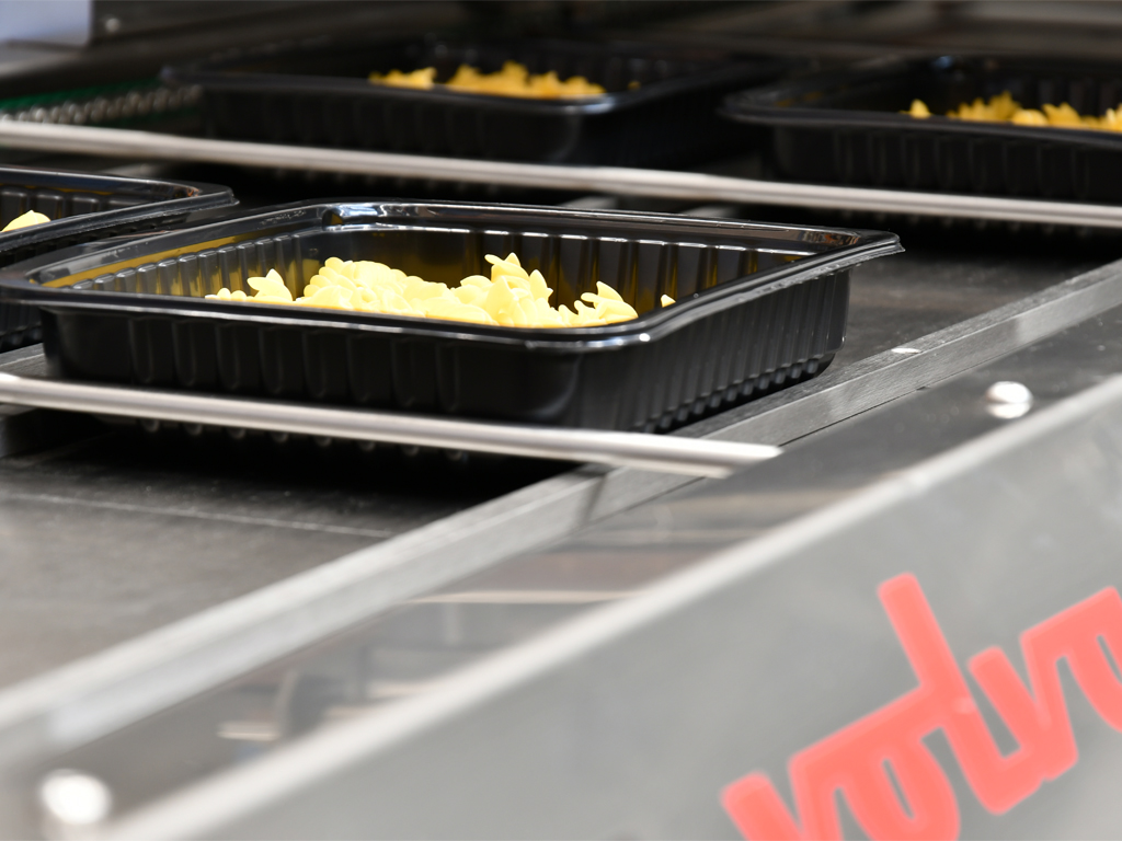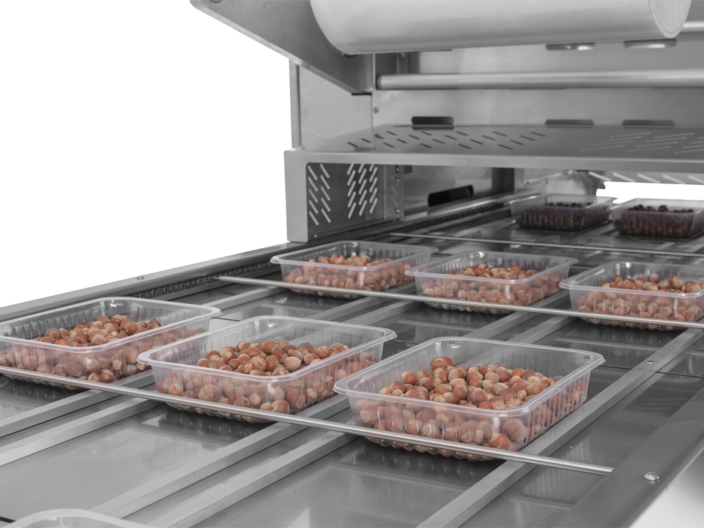 Zatavovací stroj E30 slouží k automatickému balení potravin a hotových jídel do plastových misek. Stroj umožňuje vakuování potravin, rovněž i balení pomocí inertního plynu (MAP), díky čemuž se prodlužuje životnost potravin při zachování jejich barvy, vůně i chuti.